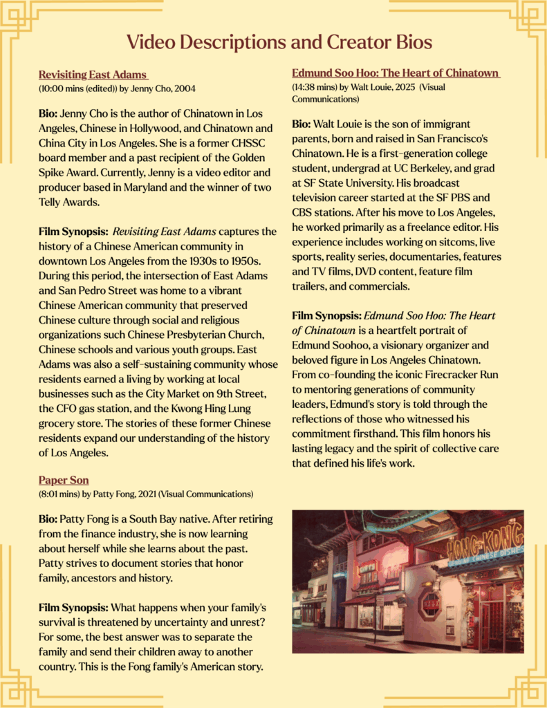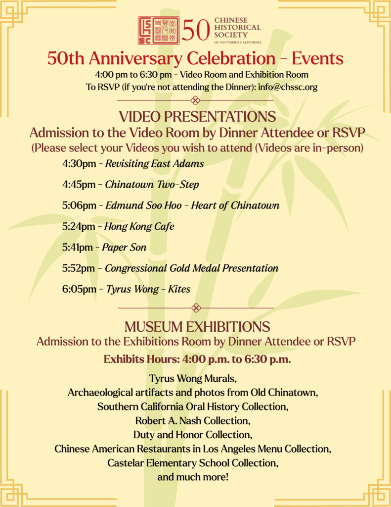 4:00 – 6:30 pm Video presentations and exhibits (Please RSVP to info@chssc.org to view even if you are attending the dinner and program)